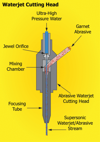 A diagram of a waterjet cutter